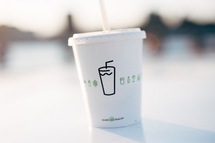 We wandered around Crown Heights and eventually made our way to DUMBO – a really lovely, atmospheric neighbourhood with incredible views of the Manhattan skyline and the Brooklyn and Manhattan bridges. While sitting there treating ourselves to a Shake Shack milkshake, we spotted a queue and investigated: turns out there was an East River ferry about to leave. I grabbed us tickets (not even knowing where it went) and we hopped on just as the sun was setting, which yielded beautiful views (and an encounter with a green-haired Jared Leto, believe it or not).